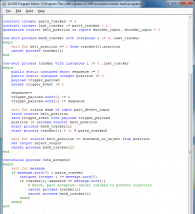 The Composer utility allows the development of SCORE language programs which provide straightforward natural language descriptions of even the most complicated, parallel, asynchronous, high speed systems. When these descriptions are compiled and loaded into one or more Maestro devices race-free operation is guaranteed.